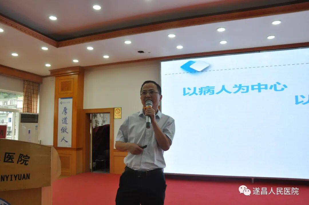 遂昌县人民医院院长周小伟、副院长詹义星、护理部主任李君、医疗质量管理监控中心副主任洪利明、肖润云也给大家带来了精彩内容,告诉大家必须严谨、规范地做好本职工作。