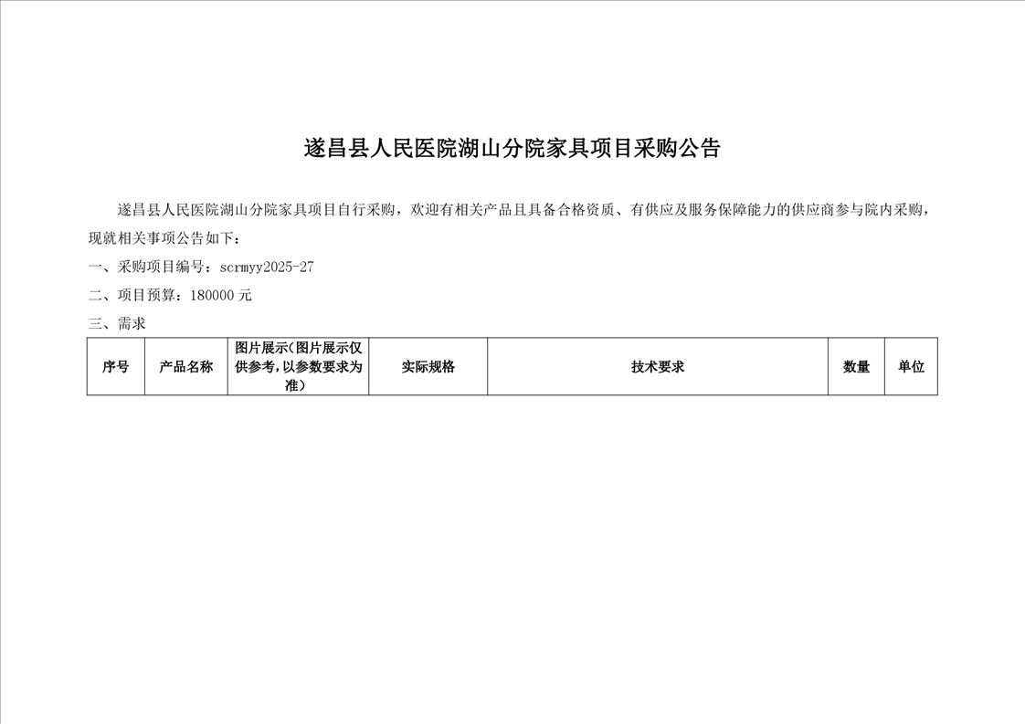 【采购工作】遂昌县人民医院湖山分院家具项目采购公告